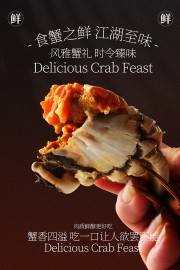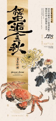 中式水墨风蟹逅金秋美食佳肴促销海报设计